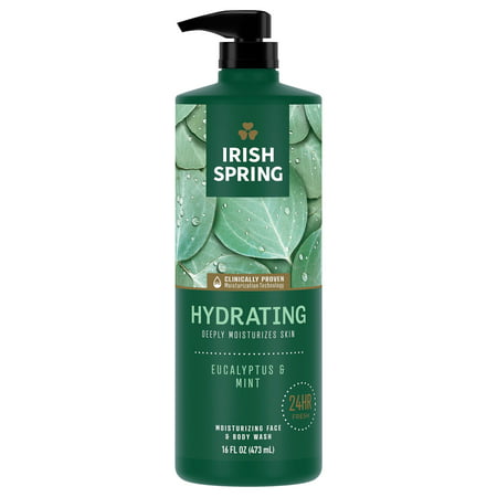 Irish Spring Hydrating Body Wash for Men Moisturizing Body Wash with Eucalyptus and Mint Scent 16 Oz Pump