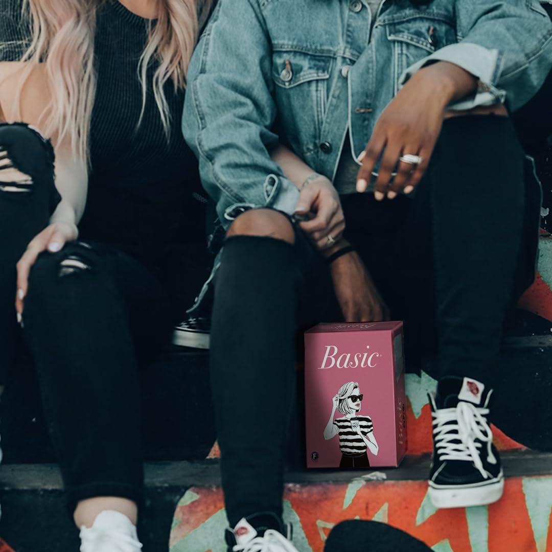 Basic AF: A party game for Basic B's! - Best played together with a group of 4-10 girls on your ladies night, Bachelorette party or just cuz. The sassiest party card game that has ever released so far. Find out which one of your friends is “most likely to…” bring a flask to work, disappear with the Channing Tatum look-alike, and other hilarious Basic tropes. This fresh pack of cards is sure to be a big hit for any girls' night! Basic is a must-have for family gatherings, trips, and vacations. Basic Betch is perfect for your ladies game night or an on the go trip to Lululemon. Have fun discovering things about your friends. WARNING! Highly addictive.Here is a friendly 350 reminder: This is the full card game, but check out our numerous expansion packs with focuses ranging from MOVIES to CAREER, and even more DARES to test your limits.Base Game includes 350 cards for you to laugh and enjoy with friends.