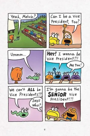 In Cat Kid Comic Club, Li'l Petey, Flippy, and Molly introduce twenty-one rambunctious, funny, and talented baby frogs to the art of comic making. As the story unwinds with mishaps and hilarity, readers get to see the progress, mistakes, and improvements that come with practice and persistence.
