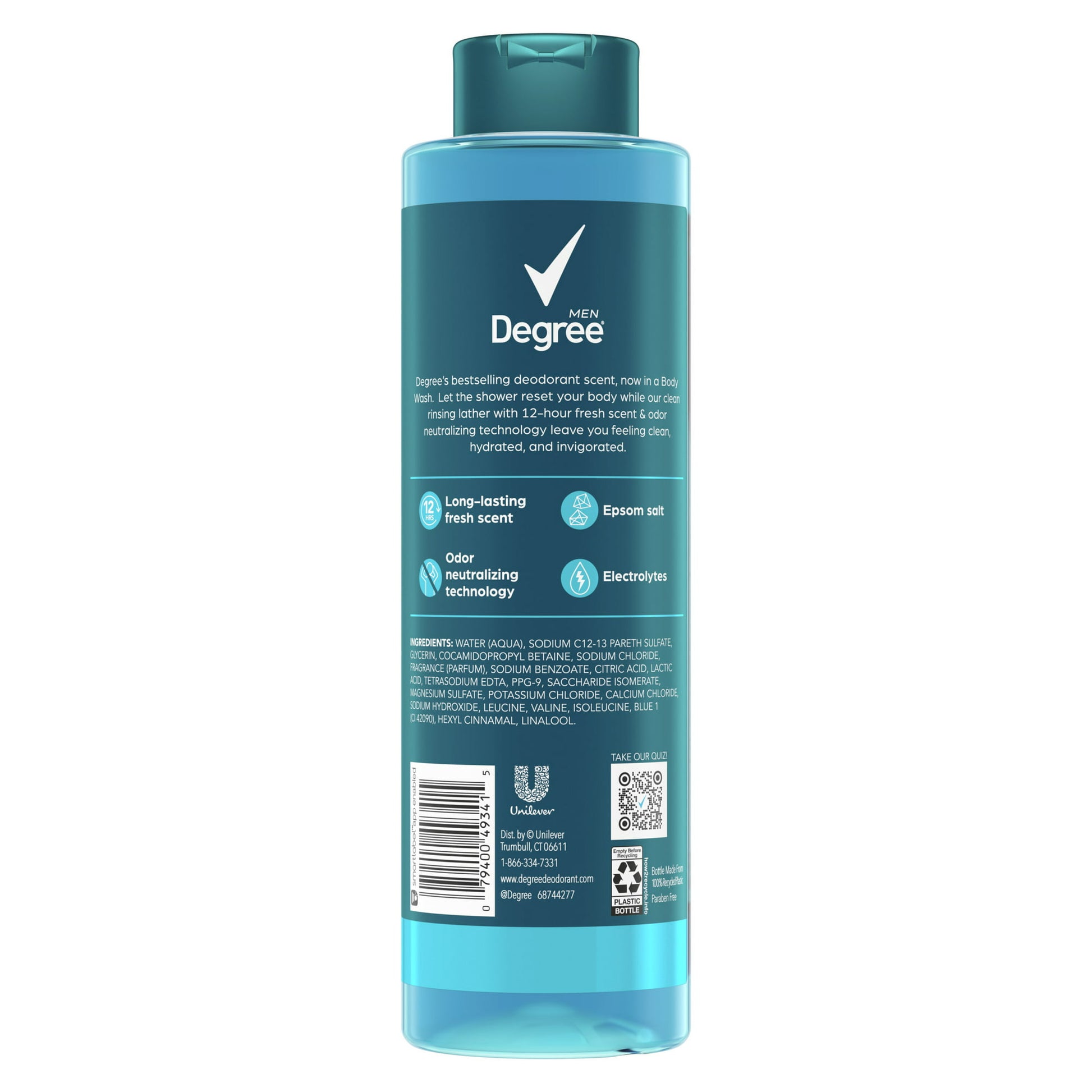 After putting your body to work, give it the recovery it deserves, starting with your post-workout shower. A cleanser specially formulated for active people, Degree Men Maximum Recovery Cool Rush Body Wash and Soak works with the power of hot water in your shower to help you reset your muscles and tackle total body recovery with every shower. With Epsom Salt, Electrolytes, and Amino Acids, this body wash features mood-boosting fragrance technology that delivers 12 hours of long-lasting fresh scent, helping you feel invigorated and prepared for whatever is next. Whether you're taking a post-workout shower or starting off your day, this deep cleansing formula washes away germs and bacteria while leaving your skin feeling clean and hydrated. It is a brilliant body care product. Simply lather the body wash with hot water to let your muscles relax and stiffness disappear. Degree Body Wash and Soak is dermatologist tested and paraben free. Ready to level up your shower game? It's a great addition to your skincare routine. Degree Maximum Recovery bath and body products are designed to keep you moving. Whatever you do, however you do it, Degree wants to help inspire the confidence in you to move more, the more you recover, the more you move.