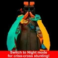 - There are 2 ways to play! Launch the 2 included racecars straight across in 'daytime mode' or into a criss-cross stunt in 'night mode.'