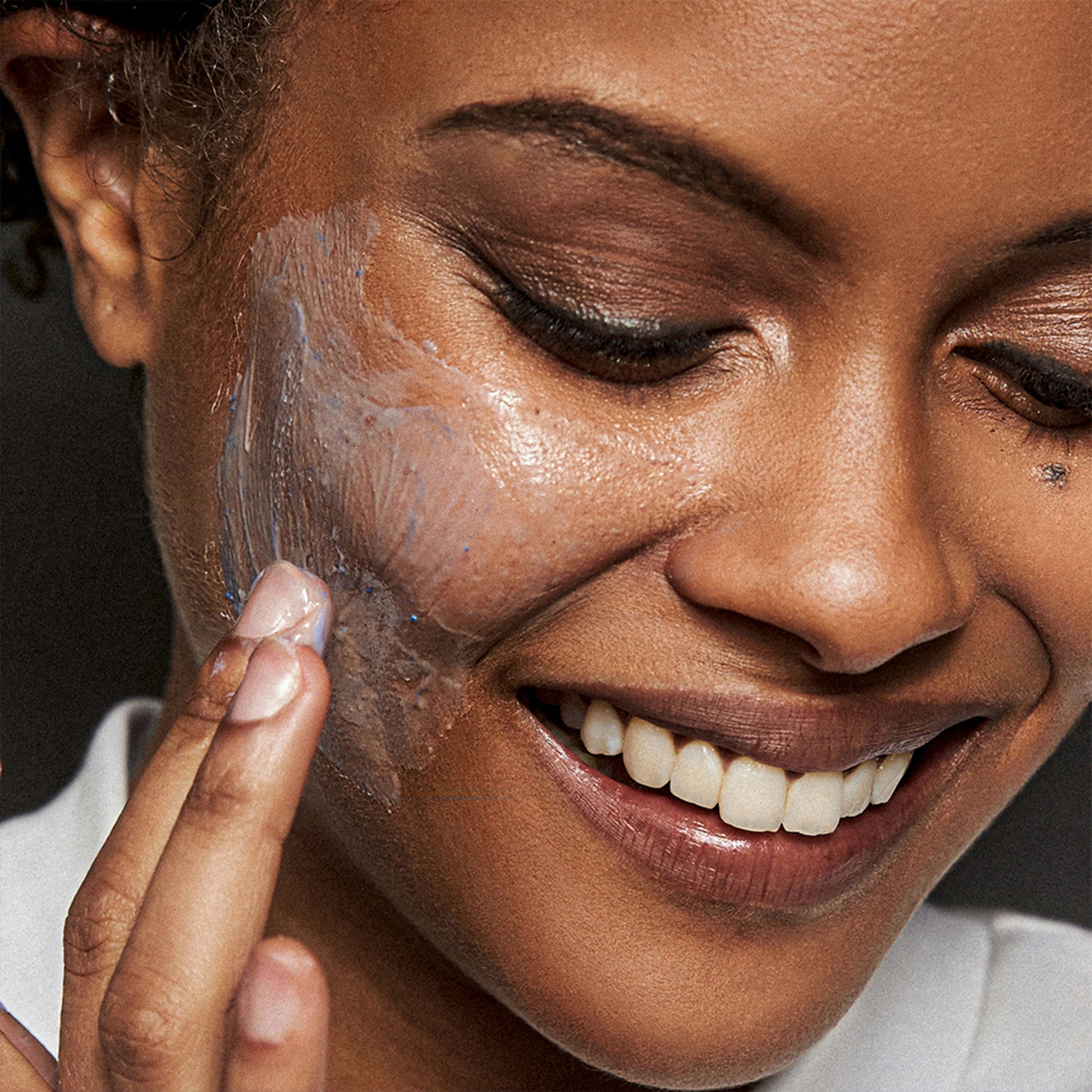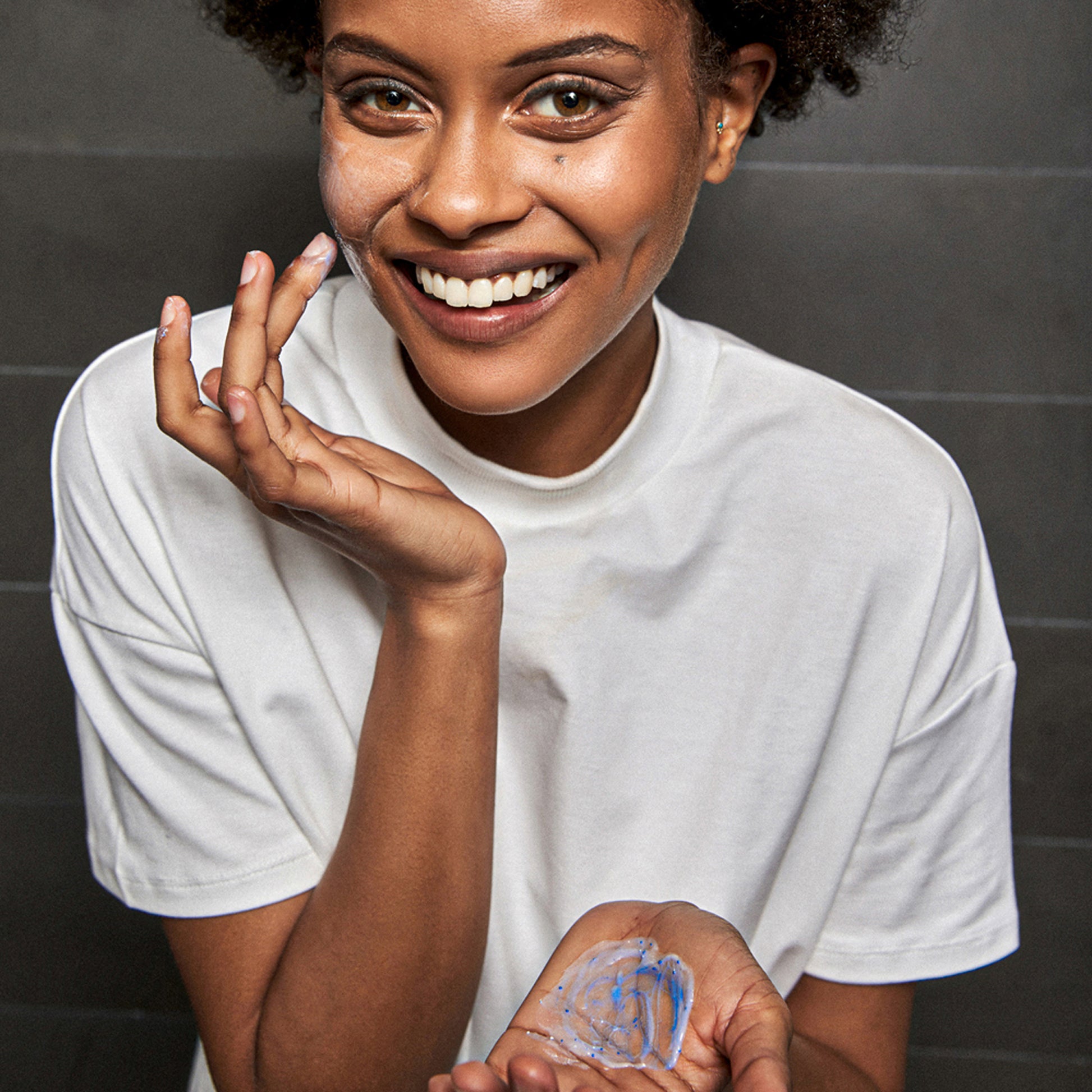 AM or PM. Apply a thin layer to areas of concern and massage until beads break fully. Avoid eye area. Leave on 5 to 10 minutes until product is dry, turns blue and cooling sensation occurs. Rinse with warm water. Use 2-3x per week