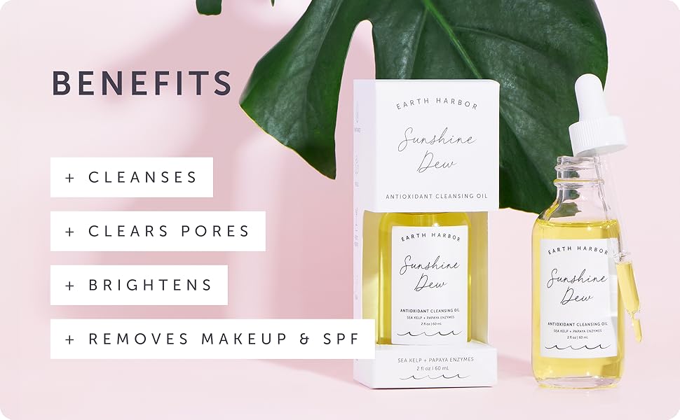 Earth Harbor | SUNSHINE DEW Cleansing Oil - Deep Cleanse & Makeup Remover | Papaya Enzymes + Sea Kelp | 2 fl oz