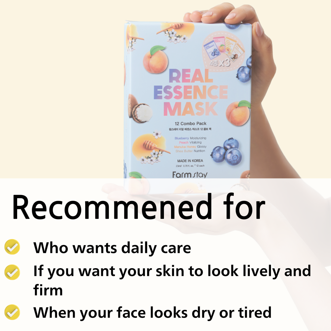 Pamper and revitalize your skin with FARMSTAY Real Essence Facial Sheet 12 Pack Korean Skincare Mask Combo. These masks are hypoallergenic, ensuring gentle treatment for all skin types. Each pack contains an assortment of deliciously scented varieties, including coconut, avocado, peach, and mango. Experience intense hydration, nourishment, and vitality with every use. Feel refreshed and rejuvenated as each mask infuses your skin with its unique essence. Try them all and discover the perfect mask for your skin's needs!
