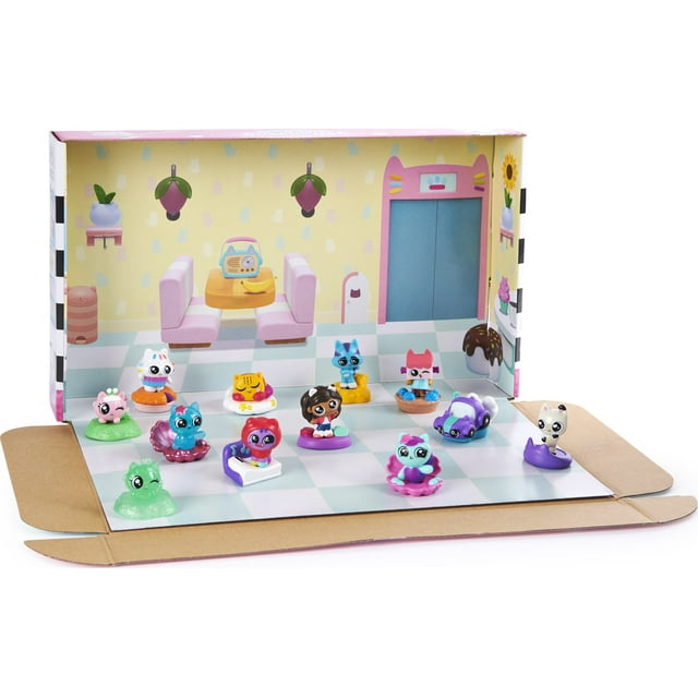 - 12 MINI TOY FIGURES: This set is the only place to get 12 Gabby's Dollhouse Mini Figures! It includes Kitty Fairy with a special finish and an MerCat you won't find anywhere else!