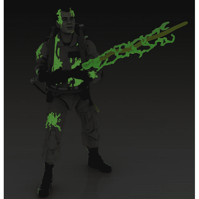 - GLOW-IN-THE-DARK FIGURE: This Ray Stantz action figure features glow-in-the-dark ecto-plasm deco for that supernatural “slimed” look. To charge glow-in-the-dark effect, place under light