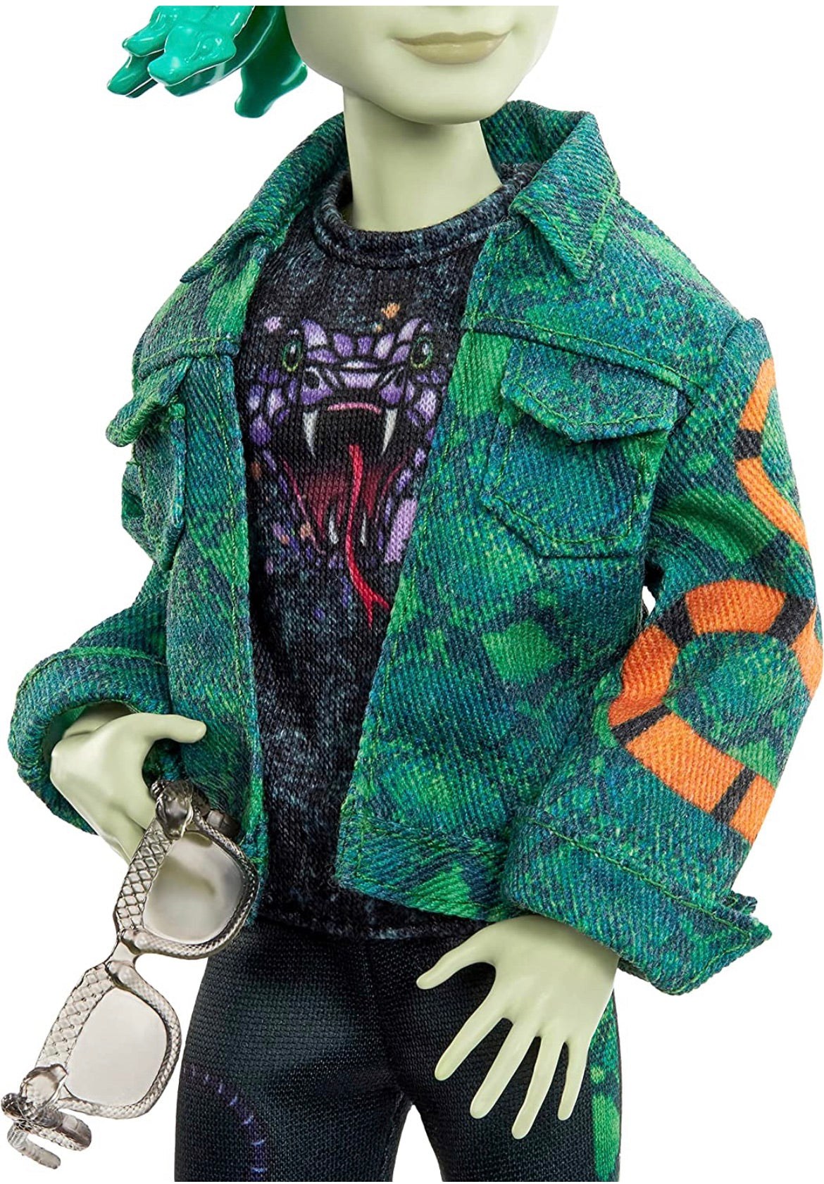 - With a graphic tee, snakeskin-print jacket, and serpentine pants, Deuce Gorgon doll rocks a frightfully fashionable fit. Tinted sunglasses and fangtastic sneakers complete the look.