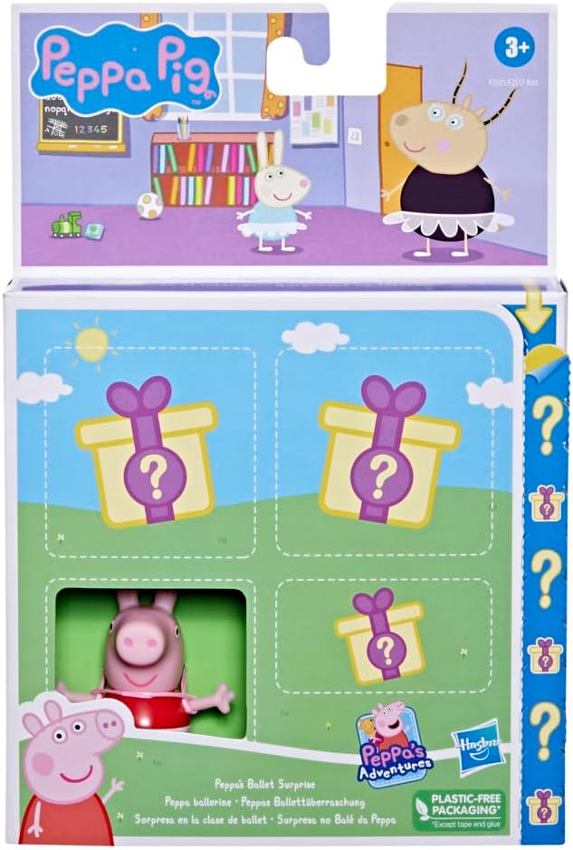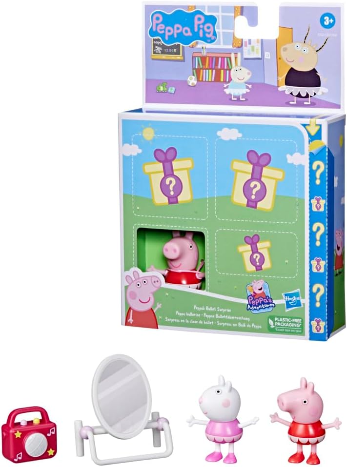 - UNBOX THE FUN: Peppa figure is visible through the window, but the other 3 pieces are a surprise! A mystery figure is ready to twirl with Peppa, and 2 themed accessories complete the ballet studio