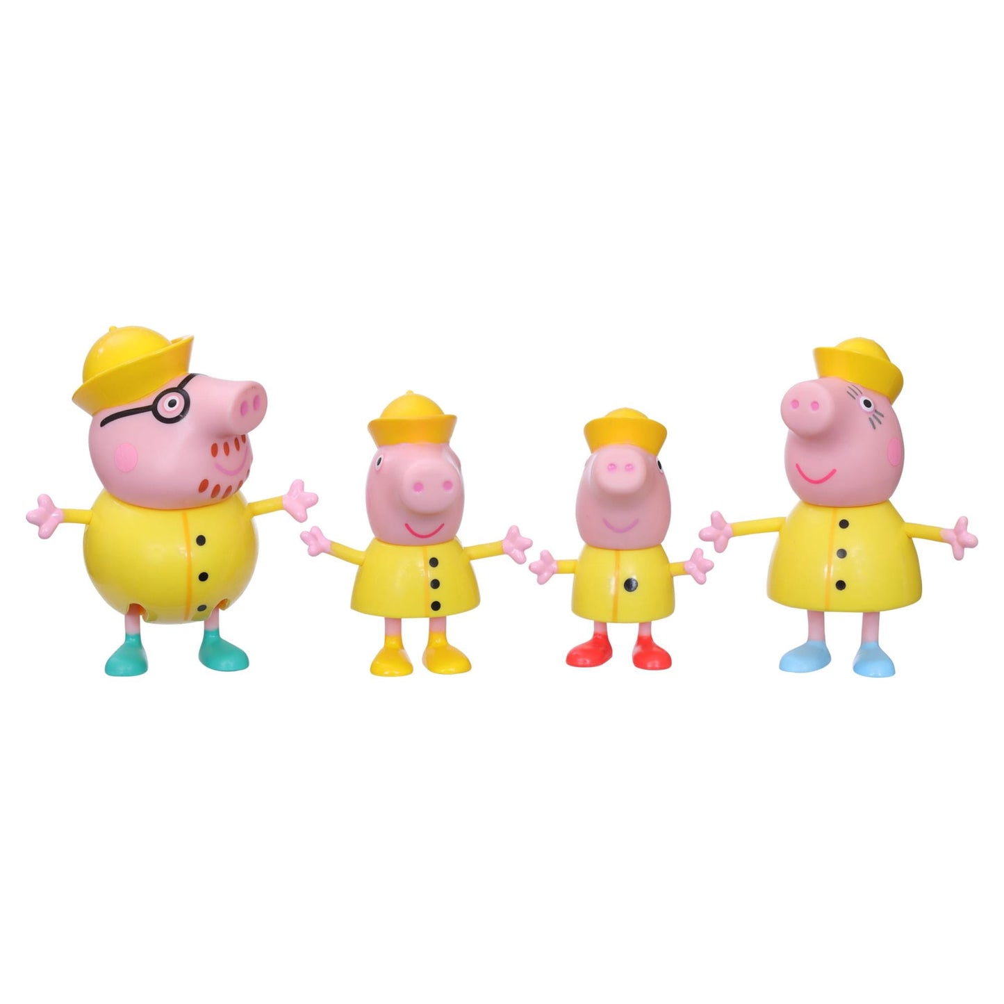 Peppa Pig Peppa’s Adventures Peppa’s Family Rainy Day Figure 4-Pack Toy Includes 4 Pig Family Figures in Raincoats, Ages 3 and up
