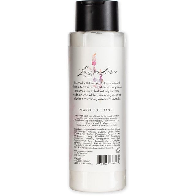Pre De Provence Lavender Collection Body Lotion 500 ml by Pre De Provence. Escape to the south of France with this Lavender Body Lotion. Enriched with Coconut Oil, Glycerin, & Shea Butter, the fragrant lotion instantly hydrates your skin to leave it perfectly moisturized while lightly scented with French lavender. Best-selling lavender fragrance is relaxing and soothing to mind and body. Push open top. 10.1 fl. oz (500 ml). Crafted in France using old time methods.