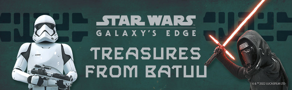 Full of treasures from Black Spire Outpost, Star Wars: Galaxy‰۪s Edge: Treasures from Batuu offers unique items inspired by Star Wars: Galaxy‰۪s Edge. Learn about Batuu‰۪s secrets and locales‰ÛÓfrom Oga‰۪s Cantina to Savi‰۪s Workshop‰ÛÓand gather one-of-a-kind items along the way, including high-quality stickers, keychains, and a collectible button. An essential addition to your Star Wars collection, Star Wars: Galaxy‰۪s Edge: Treasures from Batuu will transport you to the exciting world of Batuu!