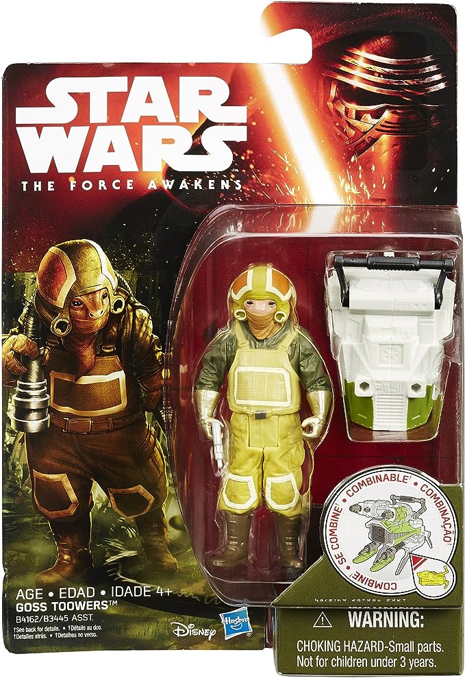Enter the world of Star Wars and launch into action and adventure! Goss Toowers is part of the tireless technical crew that provides mechanical support to the Resistance s fleet of starfighters. Combine Goss Toowers blaster with the weapons from the Kylo Ren and PZ-4C0 packs (not included) to build an ultimate weapon of galactic power. Discover exciting stories of good versus evil in a universe of heroes villains and aliens with Star Wars Forest Mission Packs. Each sold separately. Star Wars products are produced by Hasbro under license from Lucasfilm Ltd. Hasbro and all related terms are trademarks of Hasbro.