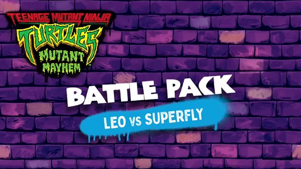 Let's get ready to rumble with the Teenage Mutant Ninja Turtles? Leonardo versus Super Fly 2-pack! Each figure is highly detailed and decorated with cuts, scars and bruises from their battle. The figures come in a window box package that includes a colorfully illustrated backdrop diorama that they can stand on. When you purchase all four 2-pack sets, the dioramas snap together to create an exciting background scene!