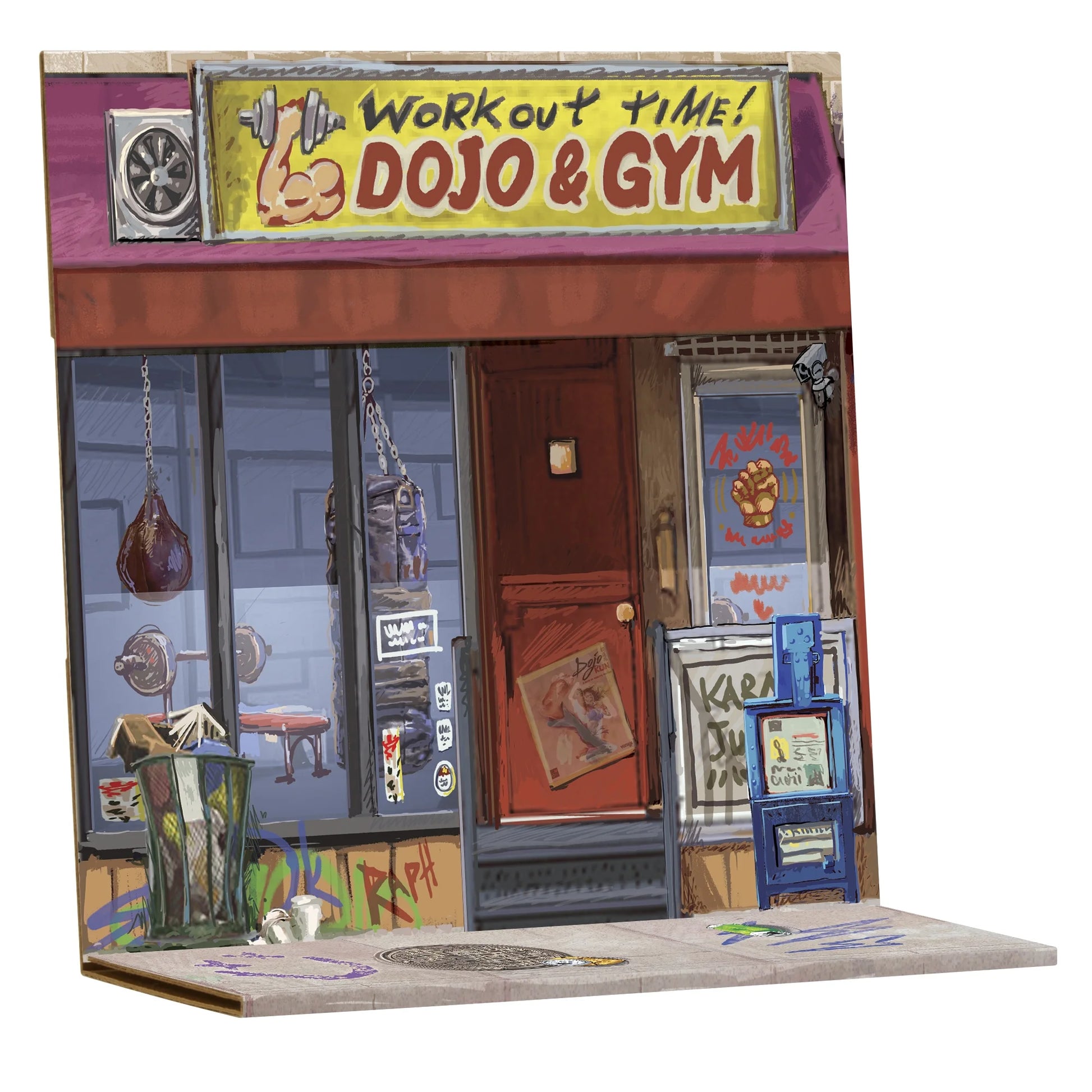 - BACKDROP DIORAMA: Includes a colorfully illustrated diorama, providing a great backdrop against which Raph and Rocksteady can battle